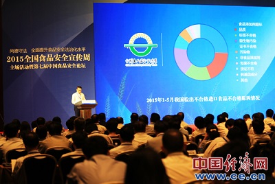 2015全国食品安全宣传周主场活动暨第七届中国食品安全论坛6月15日在京举办。中国食品安全论坛为全国食品安全宣传周主题活动之一,邀请有关部门负责人及嘉宾围绕宣传周主题演讲,并有多个分论坛活动。图为2015全国食品安全宣传周主场活动暨第七届中国食品安全论坛现场。中国经济网 裴小阁 摄