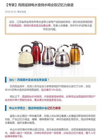 还有一些媒体报道称,现在的电水壶中标号204的钢材的高锰钢,析出的锰很多,很容易中毒,最好选择304的。标号不同,是否意味着风险不一样呢?