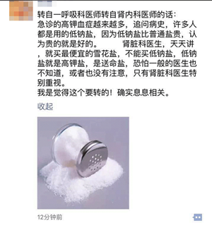 流言中称,低钠盐会导致高钾血症,使人送命。是不是这样呢?