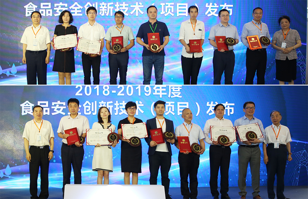 论坛现场还举行了 “2018-2019食品安全创新技术、示范项目”发布和颁奖仪式。由陈君石院士领衔的专家组对提交的食品安全创新技术和示范项目有关资料进行审核和评定,包括雀巢食品安全研究院的“基于化学指纹图谱技术的食品掺假鉴别研究”、江苏美正生物科技有限公司的“食品安全快速检测全过程闭环管控技术”、光明乳业股份有限公司的“光明五星冷链质量管理系统”在内的14个技术和项目获评。陈君石院士等评审专家分别为获奖项目企业代表颁发奖牌。