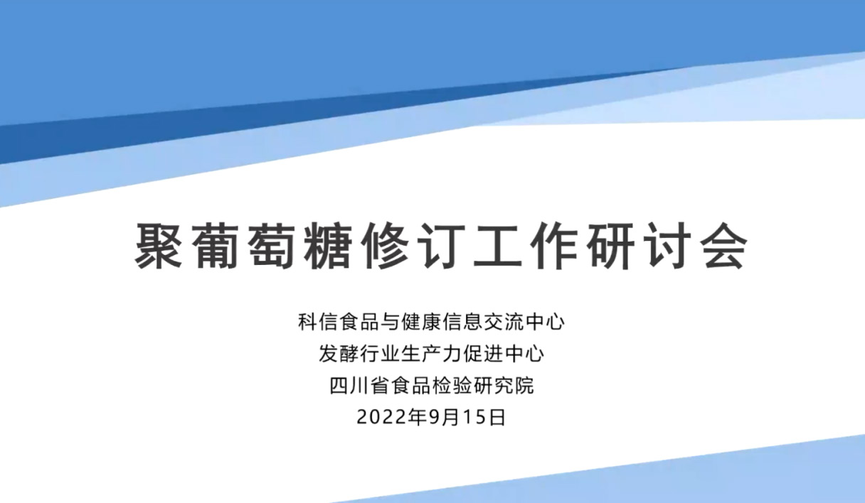 为做好《食品安全国家标准 食品添加剂 聚葡萄糖》(以下简称“《聚葡萄糖》”)的修订工作, (以下简称“ 中心”)于2022年9月15日下午召开标准草案讨论会。来自国家食品安全风险评估中心、中国食品发酵工业研究院、发酵行业生产力促进中心 、四川省食品检验研究院等单位的专家和行业代表参加了会议。会议由 中心法规事务部主任赵秀文主持。