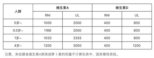 所以,适当补充维生素A也是可以的。我国对维生素A的推荐摄入量(RNI)和最大耐受量(UL)也都做出了评估,只要在这个量之间,都认为是安全的。