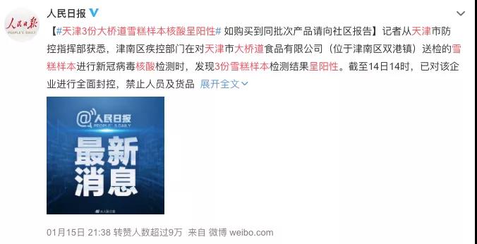 1月15日,天津大桥道3份雪糕检出新冠病毒核酸阳性……