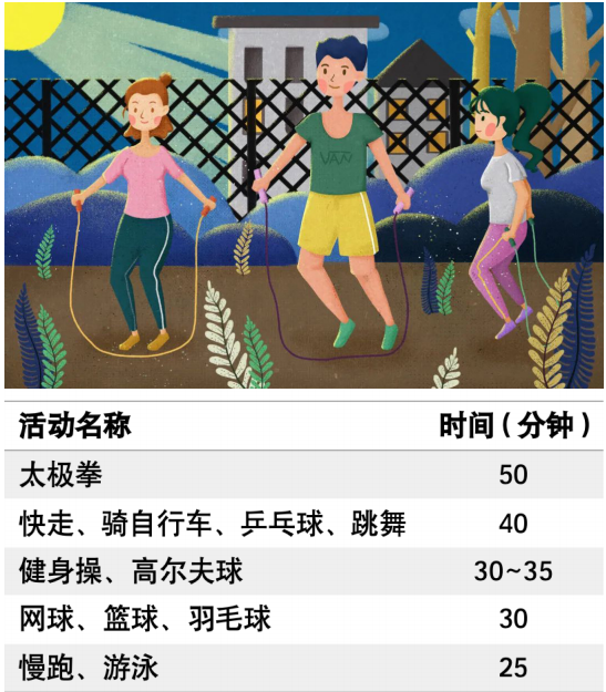 当然,我们在实践中也可以用其他活动项目来代替快走,活动量与 6000 步快走相对应即可。