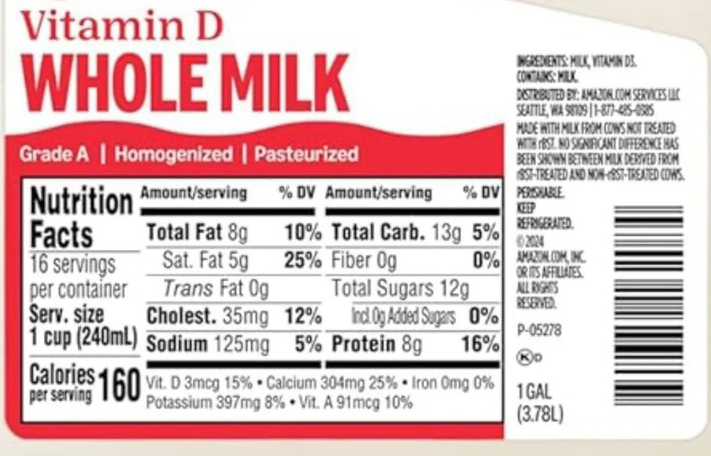 在欧美,除了吃 VD 补充剂,你能看到很多牛奶添加了 VD,比如下面这个是美国电商卖的 VD 强化的巴氏奶。