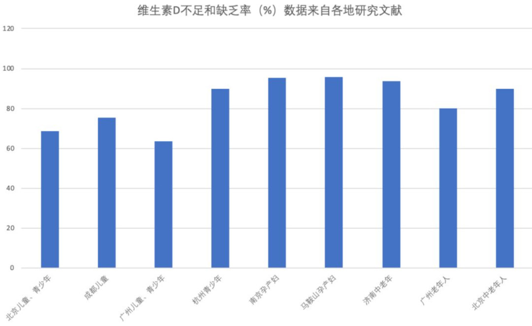 文献中的数据虽然有所出入,但不同人群 VD 摄入不足的比例大约在 60-80%。