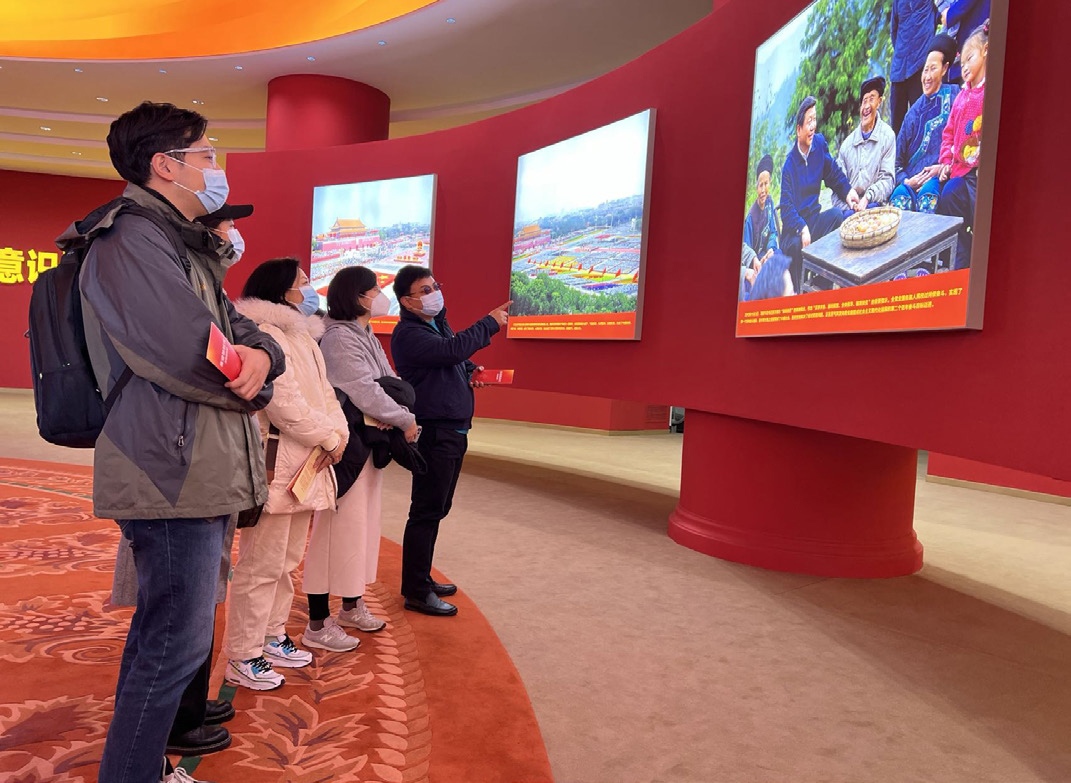 展览设序厅、中央综合展区、地方展区、展望展区、室外展区和互动展区6 个展区,面积超过3万平方米,运用图片、实物、模型等6000多项展览要素,角度丰富、内涵饱满。通过观看展览上的一组组亮眼数字、一项项创新成果、一个个历史成就,大家切实感受到新时代十年的波澜壮阔,感受到党的二十大报告提到的新时代十年党和国家事业取得的历史性成就、发生的历史性变革。