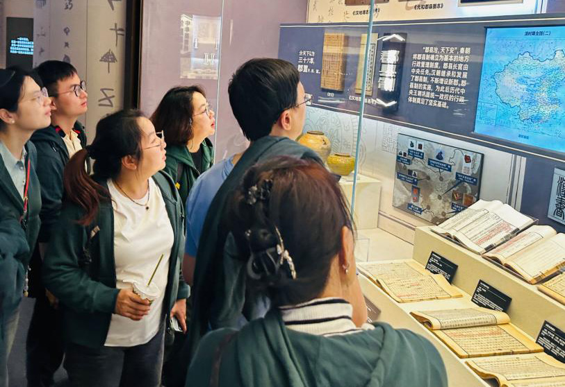 展览内容分为“大一统”“大交融”“大团结”3 个单元,通过 1500 余件文物古籍,生动呈现了中华民族共同体意识形成发展的历史脉络。在讲解人员的引导下,大家先后参观了展出的古币印章、陶罐铜器等文物以及大量古籍著作。结合讲解员声情并茂的讲解,大家对中华民族和中华文明五千多年延续不断的历史基因、交往交融中发展壮大的情感脉络以及中国共产党成立以来一脉相承的深邃思想都有了更加深刻、更加具象的认识。