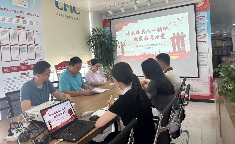 为进一步传承发扬八一精神,颂扬中国人民解放军保家卫国的奋斗精神,引导党支部成员厚植家国情怀,增强担当意识,提高党支部凝聚力和号召力,2024 年 8 月 2 日, 党支部开展了“传承八一精神,凝聚奋进力量”主题党日活动。会议由 中心党支部包大跃书记主持。