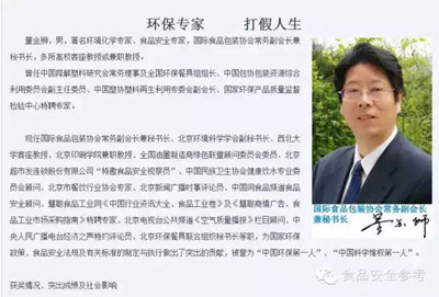 编者按6月29日,公安部通报了2014年以来全国公安机关侦破食药案件情况,其中一个案件为“国际食品包装协会负责人董某某涉及敲诈勒索案”,但业内人士都知道,董某某的所谓“敲诈”和他十多年来作为“专家”活跃于各大媒体密不可分,为什么一个没有专业背景的伪专家可以走红媒体十余年?
