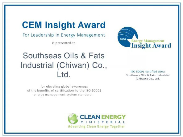 7月2日,益海嘉里收到了国际清洁能源部长级会议(Clean Energy Ministerial 简称 CEM) 通知:在第十一届“全球能源管理领导奖”评选活动中,南海油脂工业(赤湾)有限公司(以下简称南海油脂)获得“2020 年全球优秀能源管理领导奖”——能源管理洞察奖,成为今年全国粮油食品行业唯一获此殊荣的企业。这也是益海嘉里在能源管理和绿色发展领域获得的首个国际奖项!