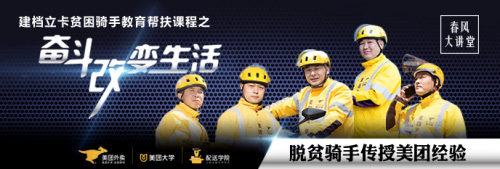 骑手提供大病保障、免息贷款以及提供 30 多门针对性培训课程等 , 进一步发挥数字经济平台优势 , 助力决战决胜脱贫攻坚。美团一直关注骑手的个人成长发展。美团大学、美团外卖“骑手自强学堂” 开设贫困骑手学习专区 , 推出 30 多门针对性培训课程, 内容涵盖安全、心理舒缓、科普知识等不同类型。美团大学配送学院面向全行业建档立卡贫困外卖配送员推出《奋斗改变生活——脱贫骑手传授美团经验》系列视频课程。邀请脱贫骑手以及外卖配送站点管理者, 讲述如何安全地多跑订单、如何保持阳光心态接人待物等等实际工作中常见的问题, 以自身经验帮助贫困骑手快速成长, 融入城市生活。课程上线至今, 已有超过 254 万人次观看。