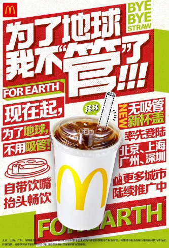 麦当劳中国宣布逐步停用塑料吸管,预计每年减少400 吨塑料