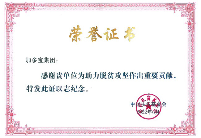 7月11日,加多宝集团获得中国乡村发展基金会(原中国扶贫基金会)助力脱贫攻坚卓越贡献奖和荣誉证书。基金会对加多宝集团过去二十余年为助力脱贫攻坚事业作出的贡献表示感谢,并期待与加多宝在推进乡村振兴、促进共同富裕的新征程上,携手前行,共创美好未来!2021年,我国脱贫攻坚战取得全面胜利,开启了“巩固拓展脱贫攻坚成果同乡村振兴有效衔接”的新征程。经农业农村部、国家乡村振兴局、民政部批准,中国扶贫基金会于 2022 年 6 月更名为“中国乡村发展基金会”,肩负新使命,开启新篇章。早在 2008 年,加多宝就与中国扶贫基金会结下公益之缘,在公益助学、灾害救援、精准扶贫等各领域深度合作,共创公益新模式,历年来加多宝累计通过基金会向社会捐赠资金超 2.7 亿元。从驰援地震灾区到开创“建设型扶贫”模式;从帮助贫困高考生圆梦大学,到“发展型助学”“教育精准扶贫”的持续探索;从企业一己之善到“以善促善、人人公益”的理念升华;双方携手并进,开拓创新,为脱贫攻坚事业持续贡献力量。