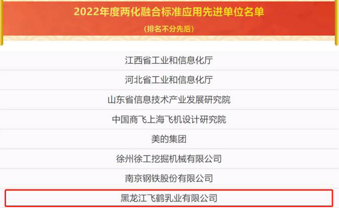 中国飞鹤获评“2022年度两化融合标准应用先进单位”