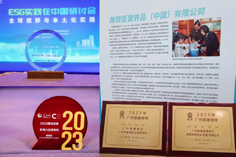 12 月 21 日,美赞臣中国荣获由广州慈善会颁发的广州慈善捐赠榜样“慈善捐赠五星单位”,美赞臣公益基金会获“慈善捐赠四星社会组织”称号。这是近一个月内,美赞臣中国获得的又一重磅奖项,此前美赞臣中国还获评新华网 2023 企业 ESG 乡村振兴优秀案例、人民网 2023 国民消费·影响力品牌创新案例。
