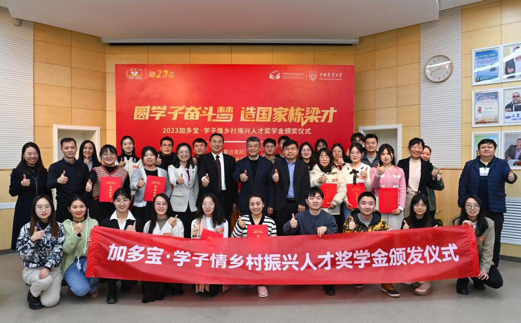 12 月 27 日,作为行业首个聚焦乡村人才振兴的奖学金项目——加多宝·学子情乡村振兴人才奖学金颁奖活动在中国农业大学举行。中国农业大学党委副书记王勇、中国乡村发展基金会秘书长陈红涛、加多宝集团党委书记庞振国等领导嘉宾出席活动,首批 50 名获奖优秀学子公布。