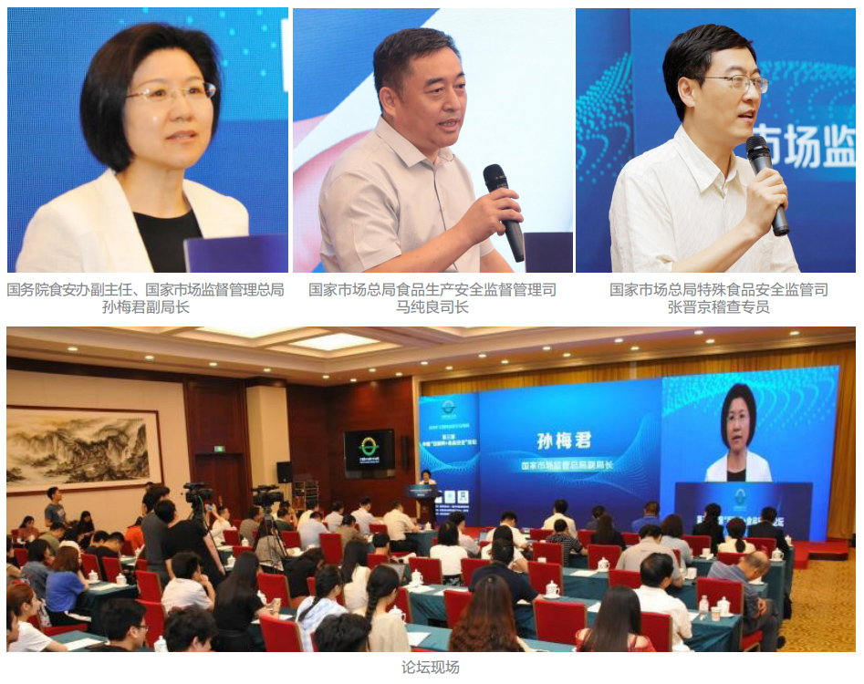 该论坛为2018年食品安全宣传周主场活动之一。国务院食安办副主任、国家市场监督管理总局孙梅君副局长、国家市场总局食品生产安全监督管理司马纯良司长、国家市场总局特殊食品安全监管司张晋京稽查专员、北京市食药监局王福义副局长等领导及专家,参加会议的还有蒙牛集团、阿里巴巴集团等行业代表共150余人。