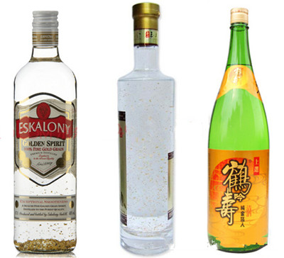 (从左到右分别是德国、台湾和日本的金箔酒)