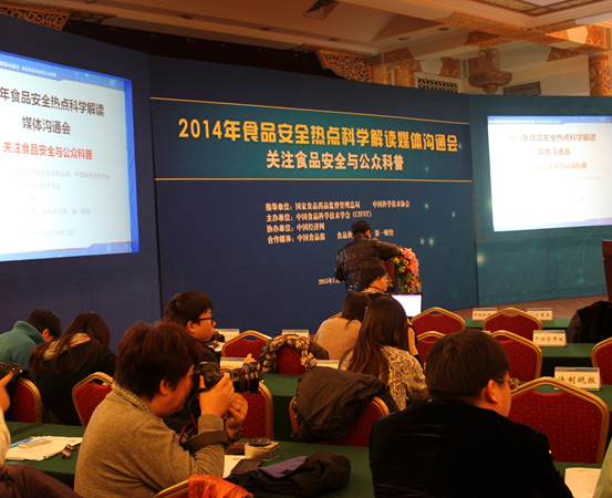 今日,由中国食品科学技术学会主办、中国经济网协办的“2014年食品安全热点科学解读媒体沟通会”在京举办。会议公布了由中国经济网食品安全舆情研究所选送的12个国内最具有代表性的食品安全热点问题,并邀请中国工程院院士陈君石、庞国芳、孙宝国等权威专家一一进行解读。
