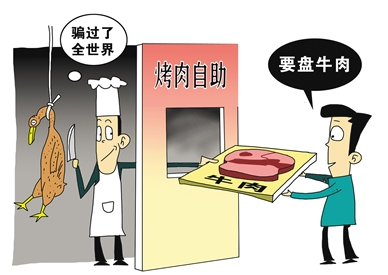 2014年,北京某自助餐厅因提供的“肥牛”并非真牛肉,被消费者起诉。该餐厅厨师长在庭审中承认原料造假,并称“餐饮行业都这么做。”