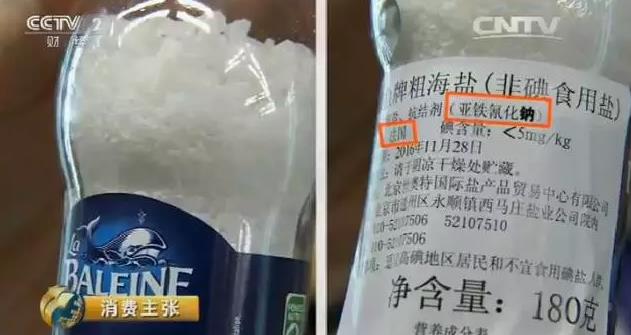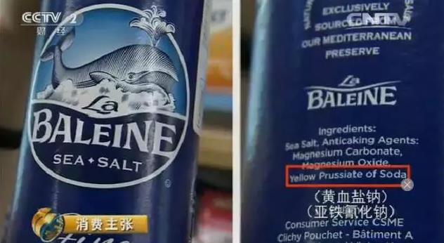 这是央视记者在一家大型连锁超市看到的,西班牙进口的食盐,使用了亚铁氰化钠,和亚铁氰化钾是一个功能。
