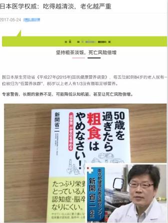 所以,《日本医学权威:吃得越清淡 老化越严重》这篇文章是对调查报告的严重误读和歪曲,得出的推论更是误导老年人,就是披着科学的外衣在忽悠大家。