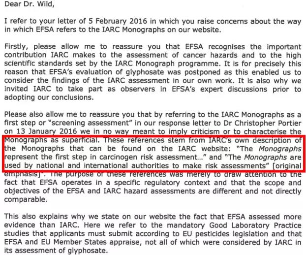 国际癌症研究机构当然对这个说法很不爽,机构负责人又给欧盟食品安全局写了封信要求更正该言论。