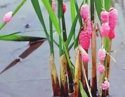 下图中粉嘟嘟的密集恐惧就是福寿螺的卵,你以后看到了一定要默默走开,因为无论你做出多少努力去消灭它,都是徒劳的...