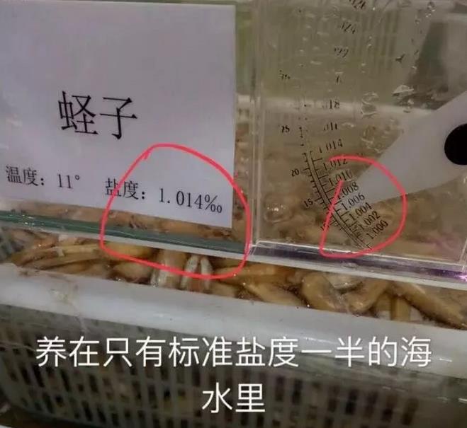 他们还标了海鲜的种类,因为不同的海鲜种类最适宜的盐度也略有区别,看起来挺专业的。