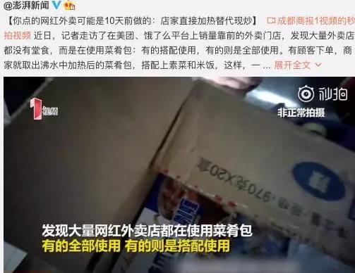很多人都习惯在家里手机一点,不到半个小时,一份好吃的菜肴就送到你的面前。不过,今天有媒体报道了外卖中使用方便菜肴包的新闻,大大“震惊”了许多习惯点外卖的消费者。
