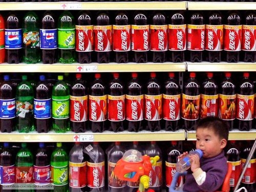 南京一家超市内,货架摆满了碳酸饮料。