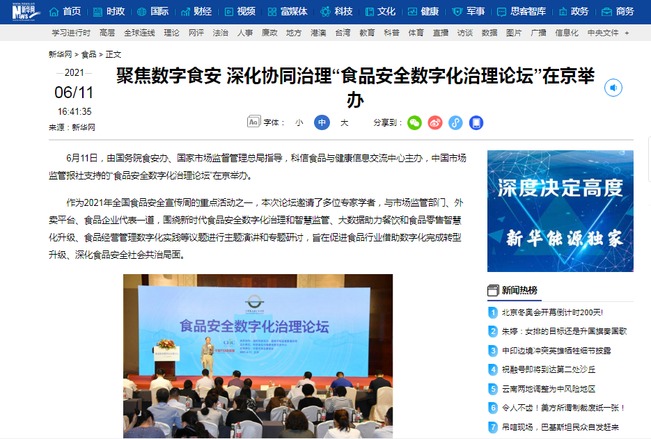 “食品安全数字化治理论坛”食安周期间举办