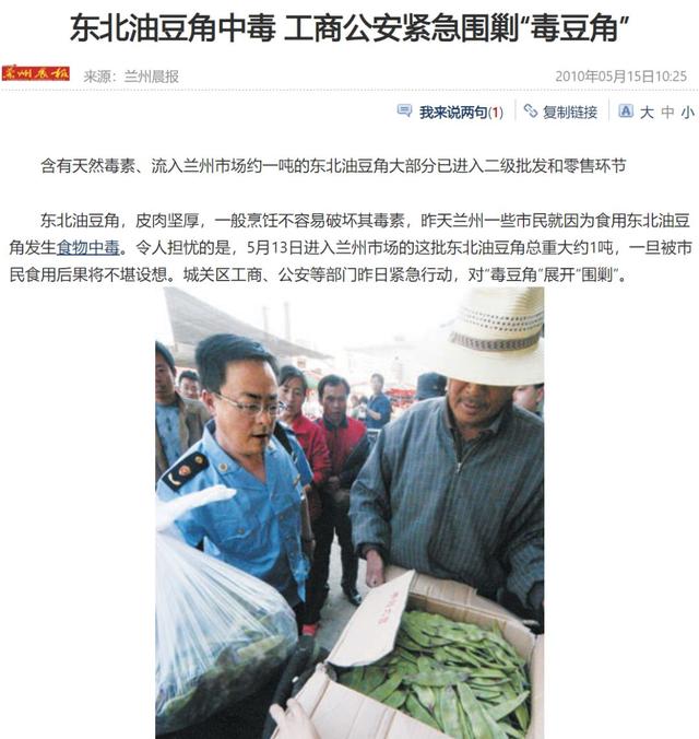 2010年当地媒体直接将东北油豆角称为“毒豆角”,工商、公安还紧急出动,围剿“毒豆角”。