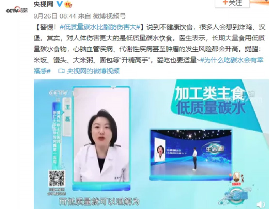 最近央视一个节目中就有专家指出,低质量碳水比脂肪伤害大。低质量的碳水就包括了我们平时吃的白米饭、白馒头、大米粥、面包等主食。