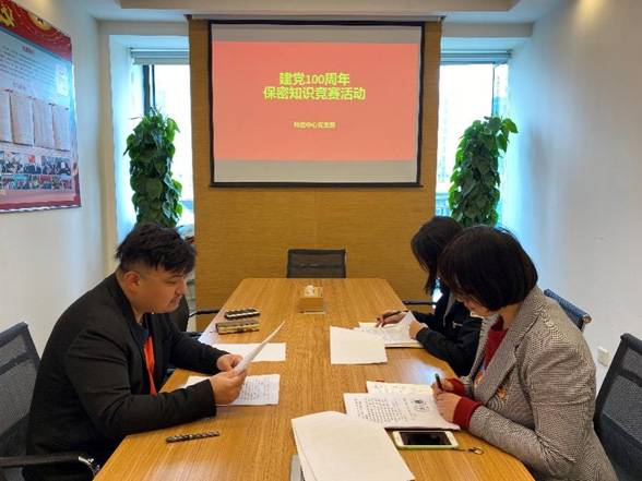 中心党支部组织全体党员参加“学党史 守党纪 知保密 保安全” 建党百年保密知识竞赛活动,号召大家通过“保密观”微信公众号和“保密观”APP 开展主题为“光辉历程, 保密有我”庆祝中国共产党成立 100 周年保密知识竞赛活动。