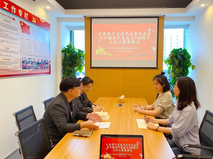 会议总结时,吴书记再次强调,百年的伟大征程,中国共产党坚守初心,带领中国人民不断为美好生活而奋斗。深入学习、深刻领会习近平总书记“七一”重要讲话精神,一定要深刻体会领悟、毫不动摇地坚持“九个必须”,在新征程上更加坚定自觉地牢记初心使命、开创美好未来。今后一段时期,中心全员要结合部管社会组织综合党委关于开展党史学习教育专题组织生活会的通知要求,通过“重点学习”、“谈心谈话”、“联系实际检视问题”“开展批评与自我批评”、“抓好整改”等方式,加强对近平总书记“七一”重要讲话和习近平总书记关于社会组织工作的重要论述精神等内容进行深入学习和感悟,从中汲取不竭的力量,在日后的工作中,牢记初心使命、坚定理想信念,以更高标准、更严要求做好我国食品信息交流工作,无愧时代,不负人民,为实现第二个百年奋斗目标砥砺前行!