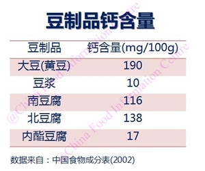 的确,豆制品中的钙含量也很高,100g黄豆有190mg钙。那么豆浆真的适合补钙吗?虽然在很多方面,豆浆都是一种非常优秀的食品,但从钙含量上来说,它却远远比不上牛奶,差的不是一倍两倍。这是因为,大豆钙含量虽然不算太低,但加10倍水磨成豆浆之后,含量就稀释得很低了。100毫升豆浆只有10mg钙,喝一杯豆浆的钙很少,想通过喝豆浆补钙真的不太可行。而且,也并不是所有的豆制品都适合补钙,比如内酯豆腐、日本豆腐的钙含量也很低。