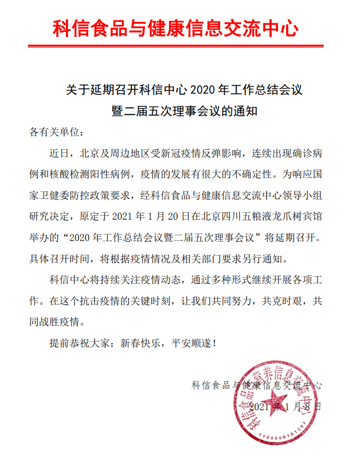 关于延期召开 中心 2020 年工作总结会议暨二届五次理事会议的通知