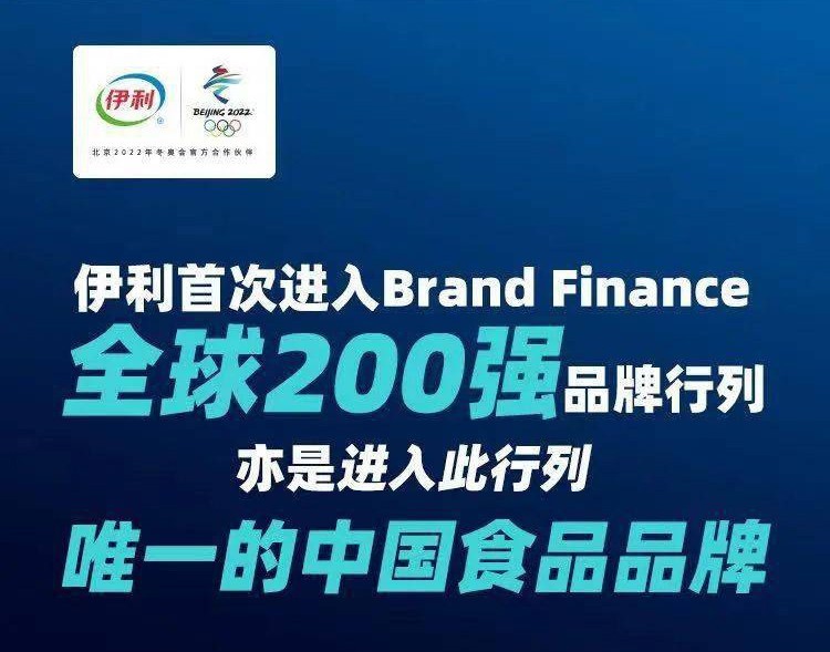 伊利作为唯一中国食品品牌,进入全球品牌价值200 强!